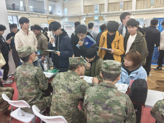 为了将“求职择业”与“参军报国”深度融合,让就业双选会成为征兵宣传的“新阵地”,为青年学子提供职业规划与家国担当并行的新路线,10月25、26日,校征兵办在2026届毕业生秋季就业双选会现场设立宣传专区,积极鼓励动员广大优秀毕业生参军入伍。