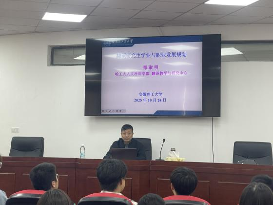 10月24日下午,应科研部和外国语学院邀请,哈尔滨工业大学郑淑明副教授、安徽大学陈婷婷教授、对外经济贸易大学向明友教授分别在外国语学院A229学术报告厅、B203会议室作题为“英语、翻译本硕生学业与职业发展规划”“2026年国家社科基金申报”“2026年国家级社科类基金项目申报指导——以言语行为研究为例”三场学术讲座,外国语学院师生共计100余人参加,讲座分别由外国语学院副院长周宁、高胜兵主持。