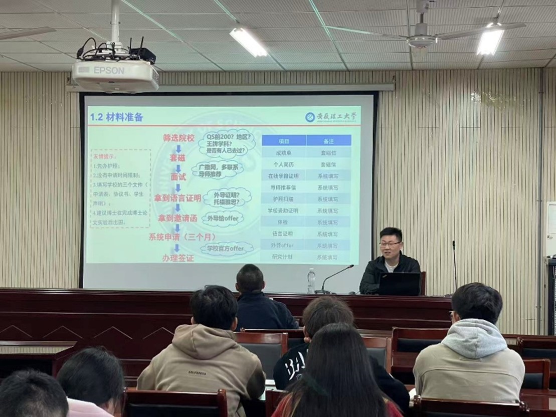 殷志强对学院近年来研究生出国访学与联合培养的整体情况作了简要介绍与分析,并鼓励同学们积极关注和参与各类国际交流项目,拓宽国际视野、增强科研创新能力。本次报告会通过真实生动的归国人员经验分享,为与会同学提供了宝贵的境外学习信息与规划参考,有助于进一步营造学院国际化培养氛围,推动研究生教育高质量发展。