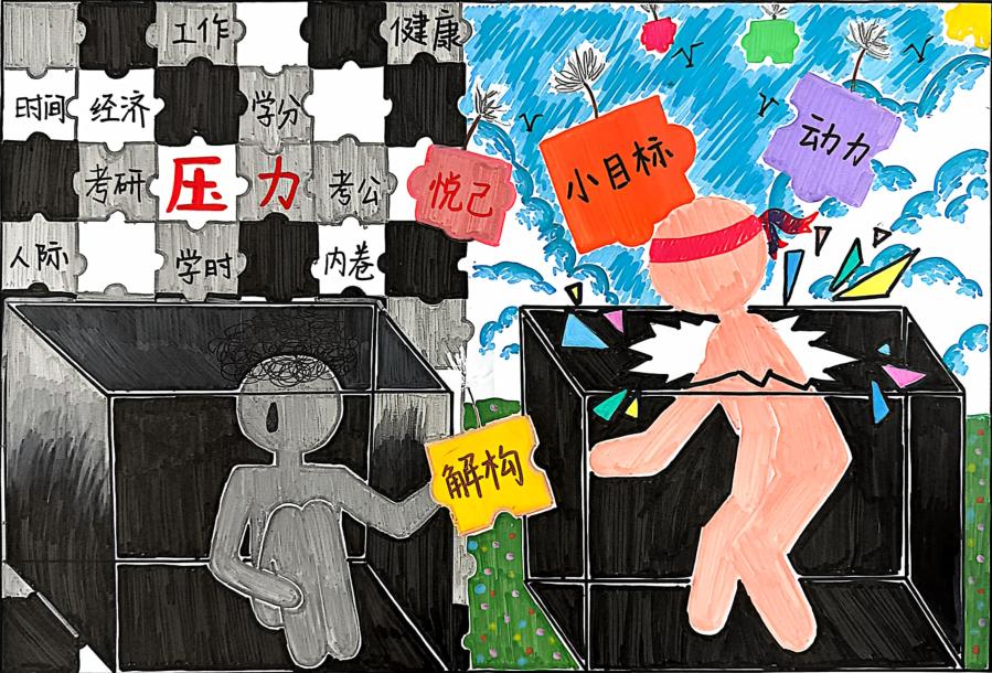活动充分利用学生社区贴近学生的优势,鼓励同学们在宿舍场域内,围绕情绪管理、压力应对、人际交往等主题进行创作。