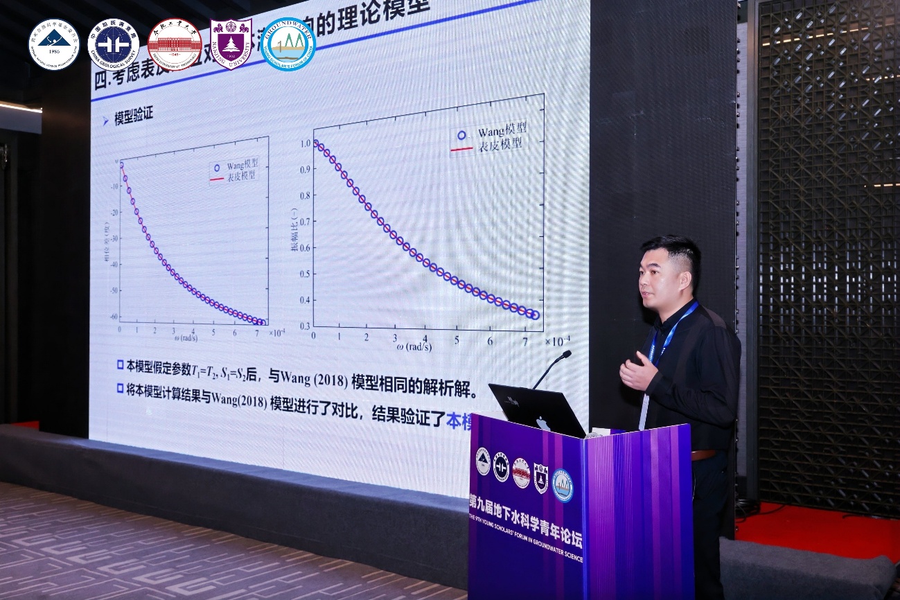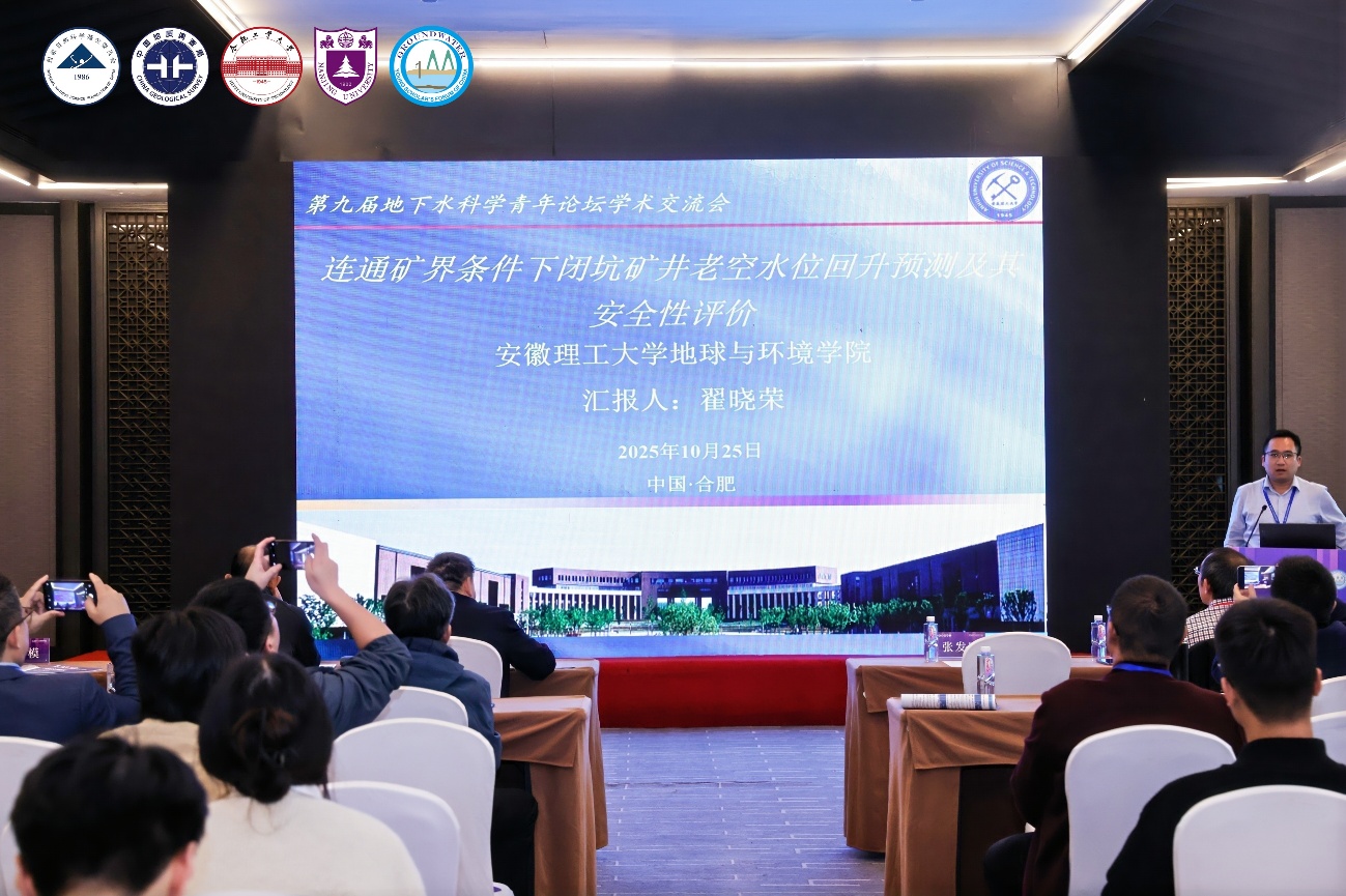 会议期间,李旭以“表皮效应对水文地质参数计算影响的实验与模拟研究”为题,翟晓荣以“连通矿界条件下闭坑矿井老空水位回升预测及其危险性评价”为题,分别作分论坛特邀报告;青年讲师王锴、戴鑫、陈凯、杨婷婷,则在各分会场,分享了“裂隙化介质反应运移的热-渗-力-化(THMC)耦合建模研究”“水位波动下的土壤地下水系统CO2运移机制研究”“宿州市松散层孔隙水化学特征与人体健康风险评价”“淮南煤田露头区岩溶发育特征及对深部岩溶水防治的启示”等研究成果。此外,地球与环境学院梁淼等6名硕士研究生在研究生论坛上作了学术报告。学院参会师生呈现的创新成果引发与会专家广泛关注。