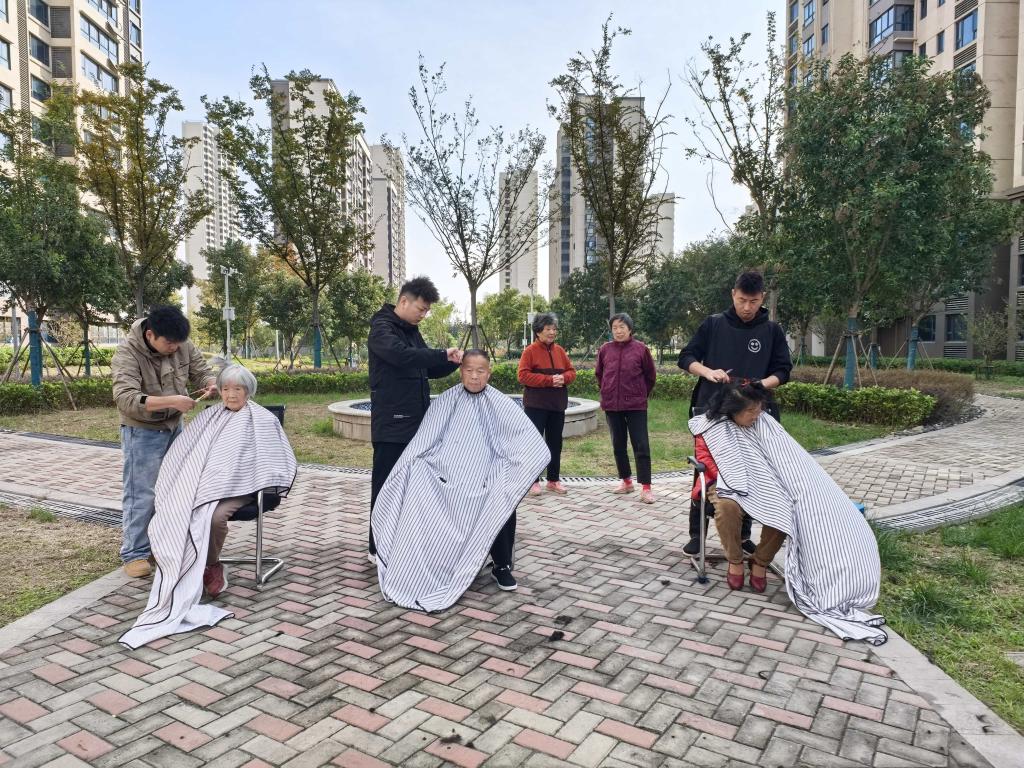 义务理发区域洋溢着温馨氛围。理发师们热情为老人理发,一边操作工具一边亲切交谈。随着剪刀咔嚓声,老人头发变得整齐清爽,脸上露出满意笑容。