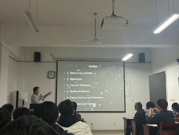 报告会上,Helmut Dannerbauer介绍了加那利天体物理研究所的基本情况及其主导的国际天文大科学装置,探讨了近些年来该领域的突破性进展,阐述了从红移、分辨率等概念到哈勃空间望远镜(HST)等国际主流观测设备的发展,梳理了宇宙自大爆炸至今的演化历程并回顾了星系的形成历史,Helmut Dannerbauer阐述了宇宙中万亿个星系共同构成“宇宙岛”的壮丽图景。最后,他展望了下一代空间与地面望远镜的发展。在交流环节,Helmut Dannerbauer与现场师生分享了个人科研心得,现场气氛热烈。