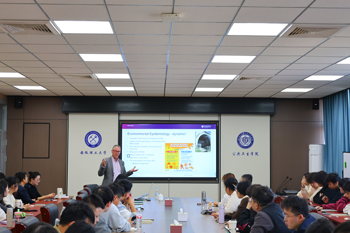 Nicholas Osborne作题为《Environmental epidemiology in Australia and globally: new thinking about old and new exposures》的学术报告。在此次讲座中,Nicholas Osborne分享了在澳大利亚、印度及其他地区开展的项目成果,重点关注空气质量、花粉和长期化学物质暴露对健康的影响,并且探讨环境因素如何导致哮喘、湿疹和慢性肾病等疾病,尤其是在低、中收入国家。他的研究运用先进的统计方法和大数据分析来揭示环境风险与健康结果之间的模式和因果关系。Nicholas Osborne还强调自然环境(如绿地和蓝空间)对身心健康产生的积极影响,采用跨学科的方法,将流行病学、毒理学和公共卫生政策相结合,以制定更有效的健康干预措施。