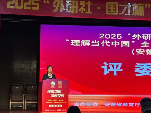 近日,2025“外研社·国才杯”“理解当代中国”全国大学生外语(英语)能力大赛安徽省赛区比赛结果揭晓,外国语学院研究生郭柳宁、本科生黄紫涵分获综合能力组省赛二等奖(指导教师:张芳、段玉婷、周宁)、演讲组省赛三等奖(指导教师:郭雨晨,钱瑞云)。