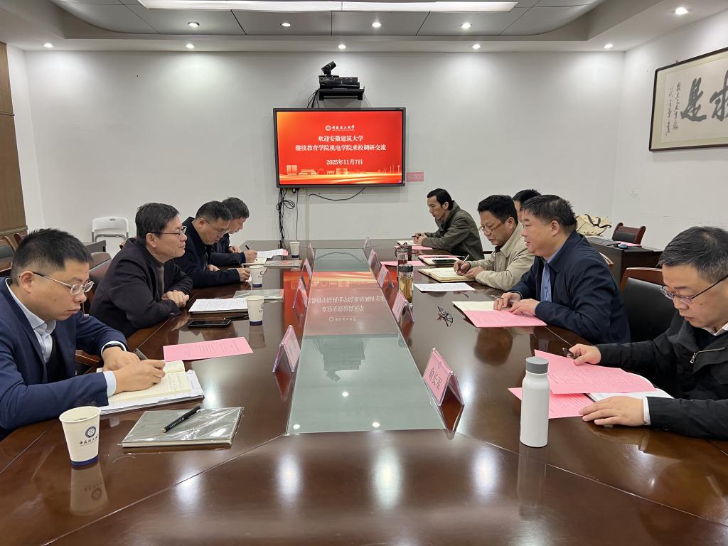 11月7日,安徽建筑大学继续教育学院院长李伟、机械和电气学院副院长黄磊一行4人,来校调研交流继续教育工作。继续教育学院党委书记王开松,学院党委副书记、院长平琦,副院长叶超,相关科室负责人参加调研交流座谈会。