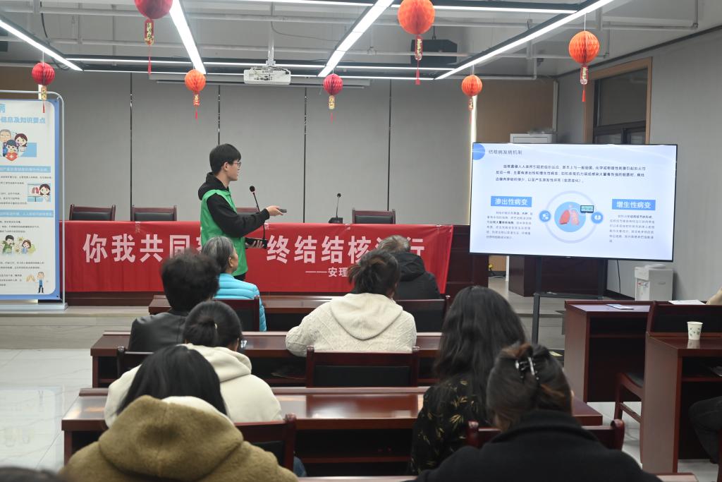 活动中,志愿者用生动易懂的语言和图文并茂的PPT,为居民们带来了一场精彩的结核病防治知识课堂。宣讲内容深入浅出,从结核病的传播途径、常见症状,到日常预防措施、养成良好卫生习惯的重要性,有效提升了居民对结核病的科学认知和自我防护能力。此外,志愿者们还精心准备了实用的“防核健康守护包”,内含医用口罩、免洗酒精消毒凝胶等物品。