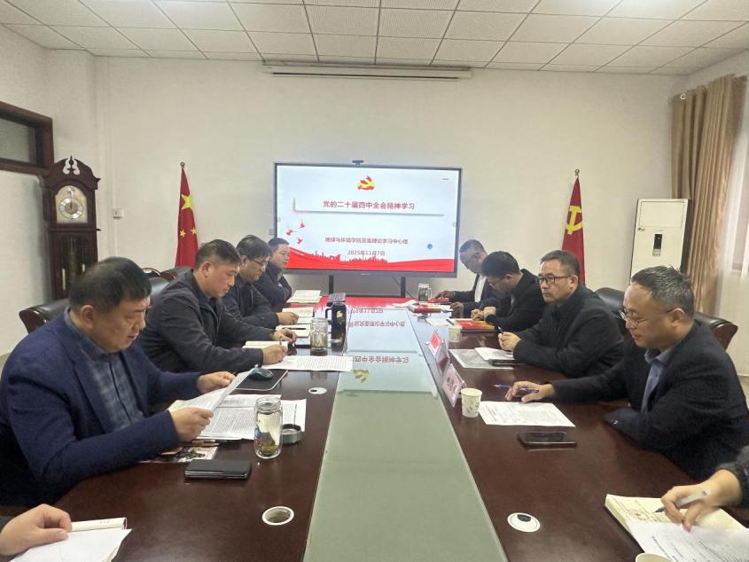 11月7日,地球与环境学院党委理论学习中心组举行专题学习会,集中学习党的二十届四中全会精神。会议由地球与环境学院党委书记陈楠主持。学校有关部门、经济与管理学院等负责人旁听会议。