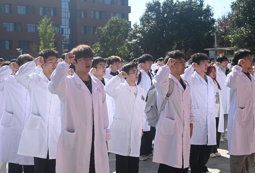 医学生誓词宣誓仪式是医学院重要的一堂思政课,更是新生开启大学生涯的“精神导航”。它让新生深刻领悟到,誓言不仅是承诺,更是一生的责任。唯有在专业上精益求精,在医德上坚守初心,才能不负“白衣”使命。誓言已立,2025级医学生将带着这份庄严承诺,在医学领域深耕,立志为祖国医药卫生事业发展和人类身心健康奋斗终生。