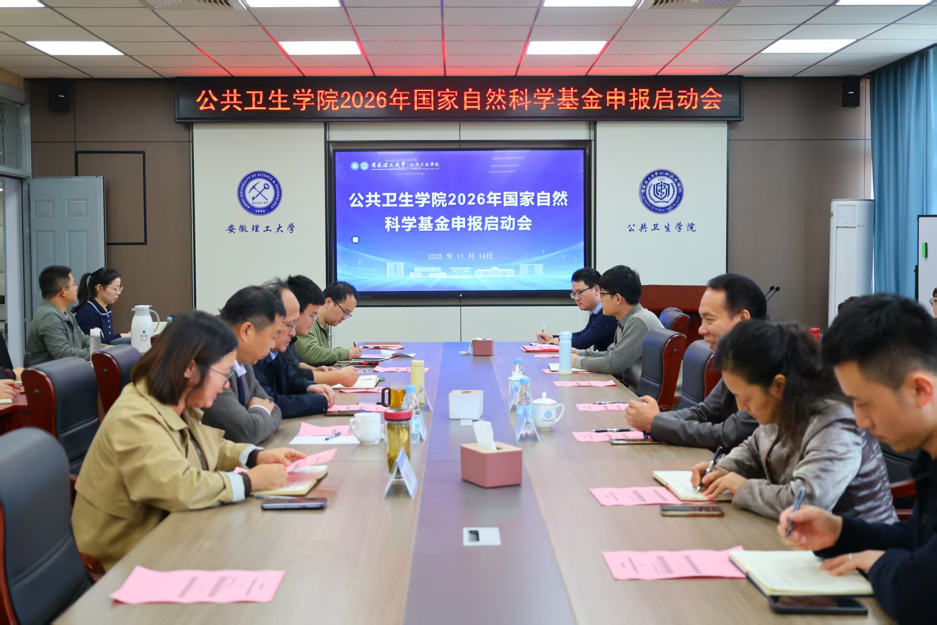 11月14日,公共卫生学院在双S北楼514会议室召开2026年国家自然科学基金申报启动会。校党委常委、副校长鲁超出席会议,学院院长叶冬青作动员讲话,会议由学院副院长穆敏主持。