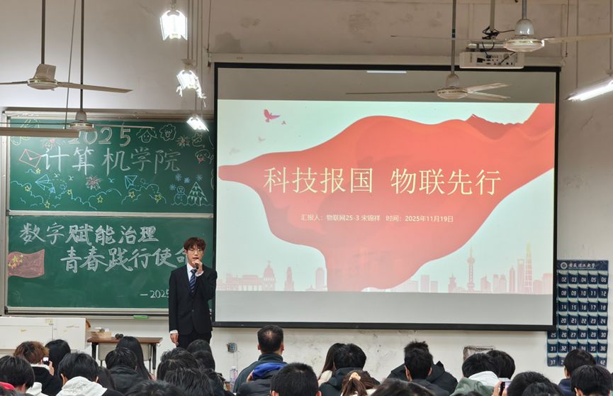 比赛现场,气氛庄重而热烈。来自各年级团支部的参赛选手们围绕“学习贯彻党的二十届四中全会精神”主题,结合自身专业学习与时代感悟,进行了精彩纷呈的宣讲。他们或从国家治理体系现代化的宏伟蓝图切入,阐述当代青年的责任担当;或结合信息技术发展趋势,畅谈如何在网络强国、数字中国建设中贡献青春力量。选手们用饱满的热情、翔实的内容和抑扬顿挫的语调,将党的二十届四中全会的精神内涵化作贴近青年的生动讲述,充分展现了计算机学子紧跟党走、奋发向上的精神风貌。经过角逐,物联网25-3班张雅琪获得一等奖,物联网25-3班宋锦祥、数媒25-2颜志宇团队、计算机25-7陈雨萱团队获得二等奖,软工25-1陶优团队等5个团队获得三等奖。