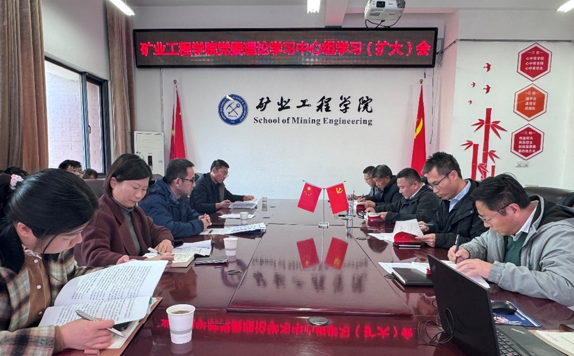 11月20日下午,矿业工程学院在宁远楼A406会议室召开党委理论学习中心组学习(扩大)会,专题学习党的二十届四中全会精神。学院党委书记常聚才主持会议,学院领导班子、各党支部书记、科级干部及全体辅导员参加会议。学校有关部门、机电工程学院等负责人列席指导。