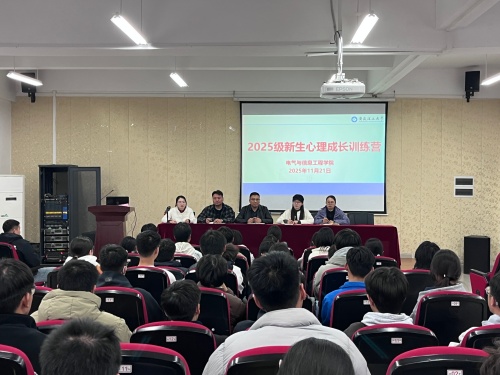11月21日,电气与信息工程学院2025级新生心理成长训练营开营仪式在励行楼B112报告厅顺利举行。学院学生工作负责人、心理健康工作联系人、2025级辅导员及78名学员参会。
