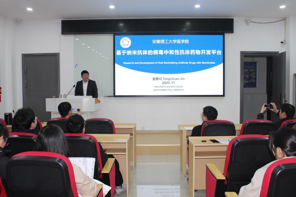 11月23日,医学院在崇仁楼B119集中开展了系列学术讲座。学院特邀合肥综合性国家科学中心大健康研究院金腾川教授、汪燕翔教授,为师生作学术报告。报告会由学院院长胡东主持。
