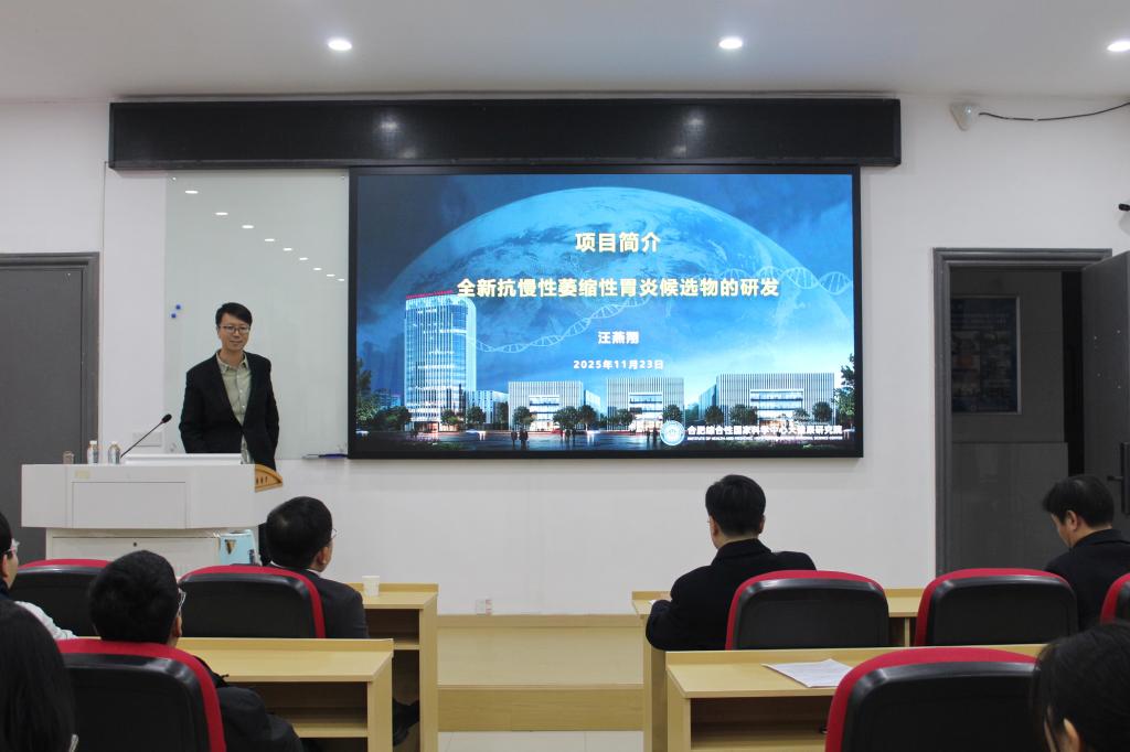 汪燕翔以《全新抗慢性萎缩性胃炎候选物的研发》为题,介绍了慢性萎缩性胃炎的发病率、作用机制等。他指出,该疾病发病率高、现有药物治疗有限,存在市场空白。他通过人工智能技术赋能,筛选出可改善胃炎的候选物IHM-A6,并展示了课题组相关研究进展。