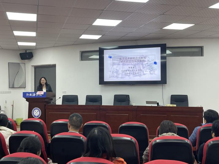 11月21日下午,应科研部和外国语学院邀请,北京邮电大学郑春萍教授在外国语学院A229学术报告厅为外院师生带来“数字技术赋能语言教育的研究前沿与创新实践”的学术讲座,外国语学院师生共计100余人参加,讲座由外国语学院副院长周宁主持。