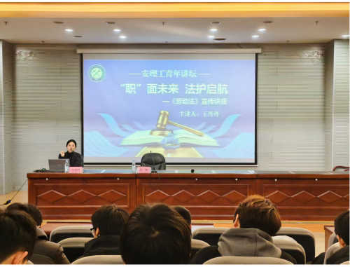 为增强大学生劳动权益保护意识,助力职业发展,11月24日,由校团委主办、电气与信息工程学院承办的“安理工青年讲坛”专题法律讲座在学校图书馆三楼报告厅举行。北京天元(合肥)律师事务所王丹丹律师以“‘职’面未来 法护启航”为主题,为270余名与会学生系统解析劳动法。
