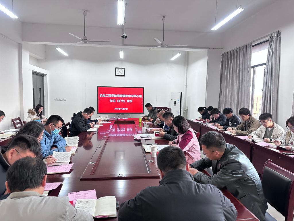 11月24日下午,机电工程学院在学院B403会议室召开党委理论学习中心组学习(扩大)会议,专题学习党的二十届四中全会精神和习近平总书记考察安徽重要讲话精神。学校相关部门负责人列席指导旁听,学习会由学院党委书记张岚主持。学院党委理论学习中心组成员参加了学习,学院非党员领导干部、新疆工程学院跟班学习领导干部、全体党支部书记列席学习。