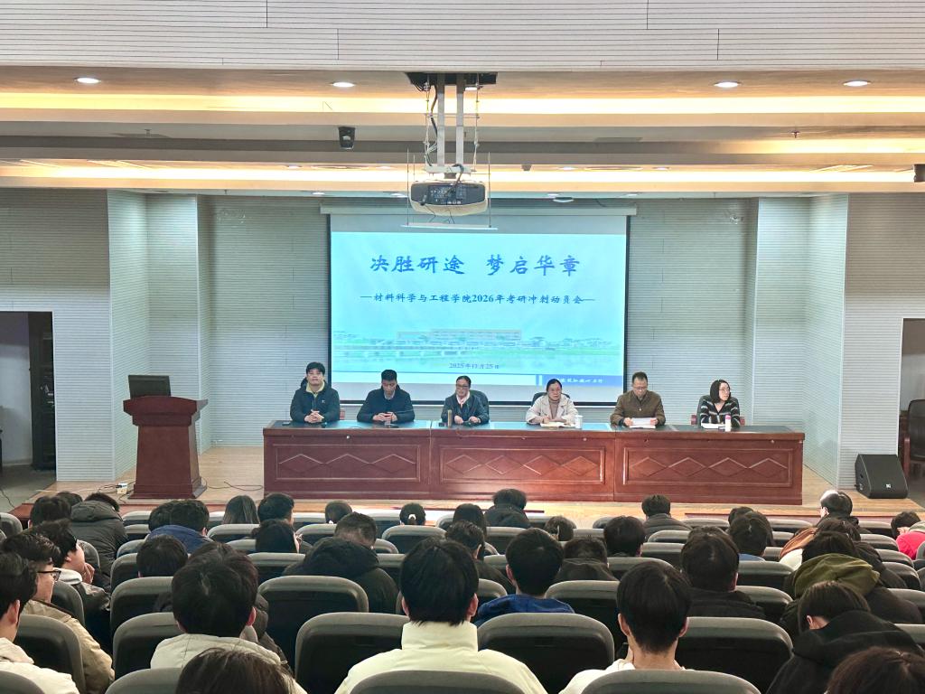 为鼓舞考研士气,坚定考研信心,传递学院温暖,11月25日,材料科学与工程学院2026届考研冲刺动员会于图书馆三楼报告厅顺利举办。学院党委副书记陈向君、各专业教师代表、毕业班辅导员及2026届全体考研学子参加本次动员会。