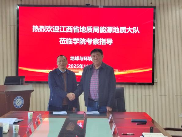 皮泉坤对学院的热情接待表示感谢,并介绍了江西省地质局能源地质大队队伍概况、业务范围和资质荣誉等情况。他表示,地球与环境学院在地质工程、资源勘查等领域特色鲜明、优势突出,期待双方在矿产资源勘探等方向深化合作。况二龙介绍了在能源地质大队工作的16位地环校友的基本情况,并就人才培养及引进、学生实习交流、科研立项和报奖提出了合作意向。