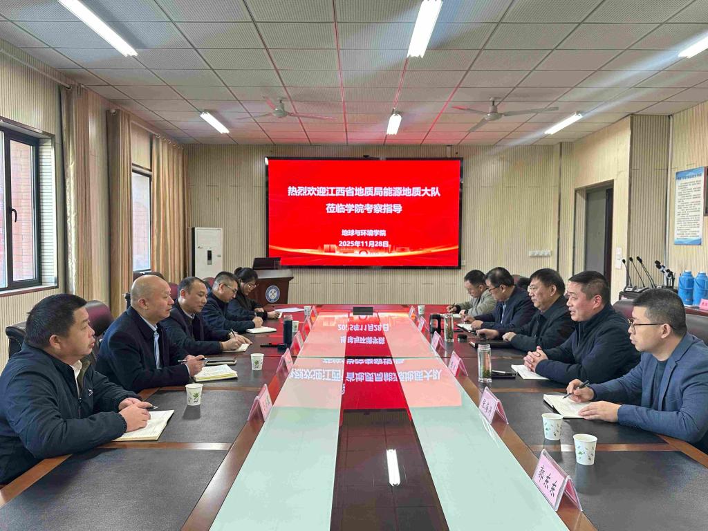 11月28日上午,江西省地质局能源地质大队大队长皮泉坤、副大队长兼总工程师、我校2006级地质工程专业校友况二龙一行5人来地球与环境学院进行调研交流。地球与环境学院党委书记陈楠、院长刘启蒙、党委副书记贾伟参加了交流会,会议由陈楠主持。