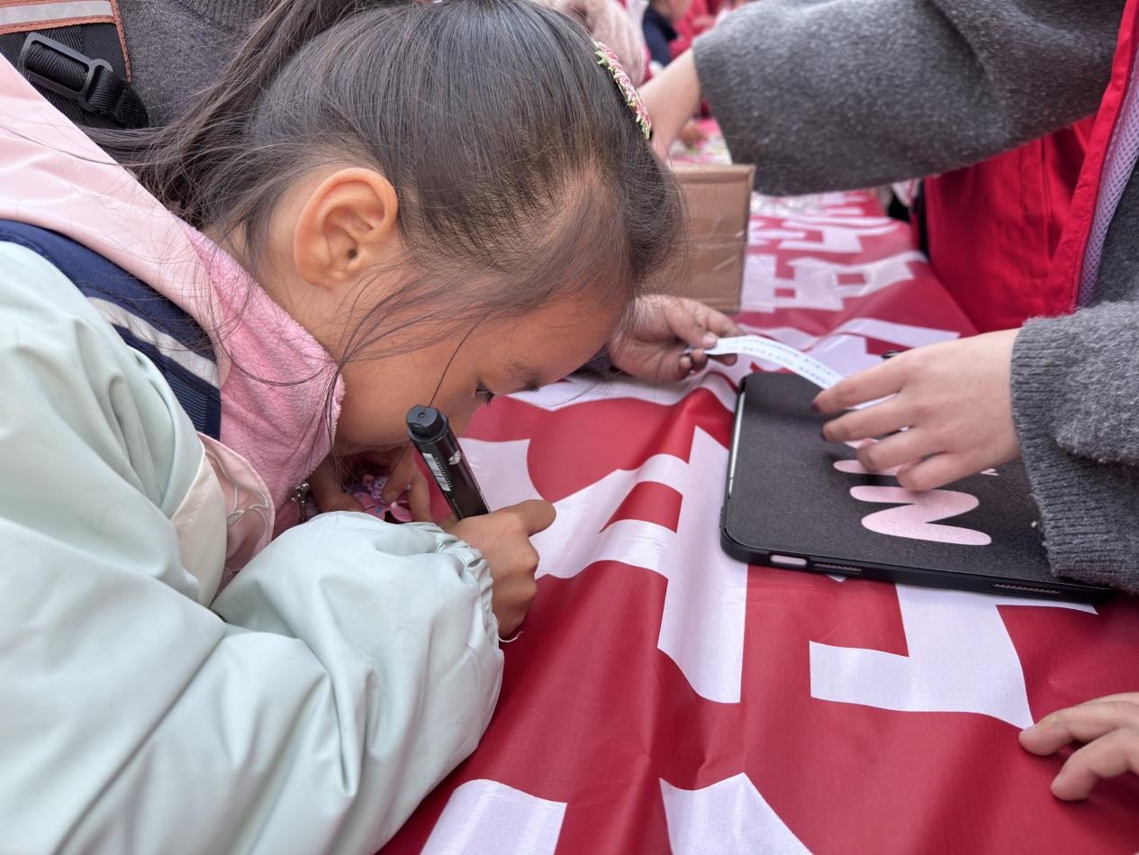 在学校附属小学,志愿者以互动问答点燃学生热情,结合上学、放学途中的常见场景,细致讲解交通安全知识,针对性纠正马路追逐打闹等不安全行为。活动现场,同学们在“文明交通记心间,平安成长伴我行”主题横幅上踊跃签名,郑重作出文明出行承诺。志愿者同步发放印有卡通标志和安全口诀的宣传资料,以生动有趣的形式让交通安全知识入脑入心。