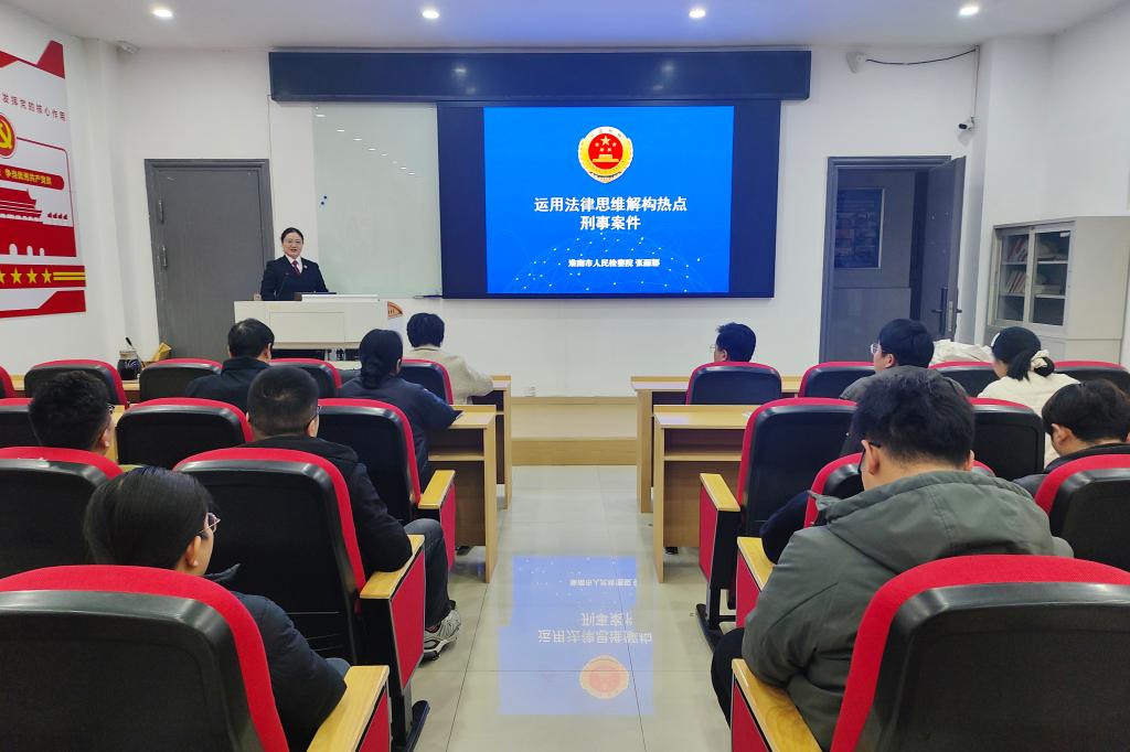 张丽娜检察官以《运用法律思维解构热点刑事案件》为题,通过热点刑事案件的类型、法律思维和法律素养及如何运用法律思维解构热点刑事案件这3个方面来深入阐述了法律思维的核心内涵与法律素养的基本要求。她强调,法律思维不仅是法律职业者的专业工具,更是现代公民理解社会规则、维护自身权益的重要方式。她通过以案说法、以法论事的方式,使抽象的法律原则与具体的案件情境紧密结合,引导师生理解法律在维护社会公平正义中的关键作用。