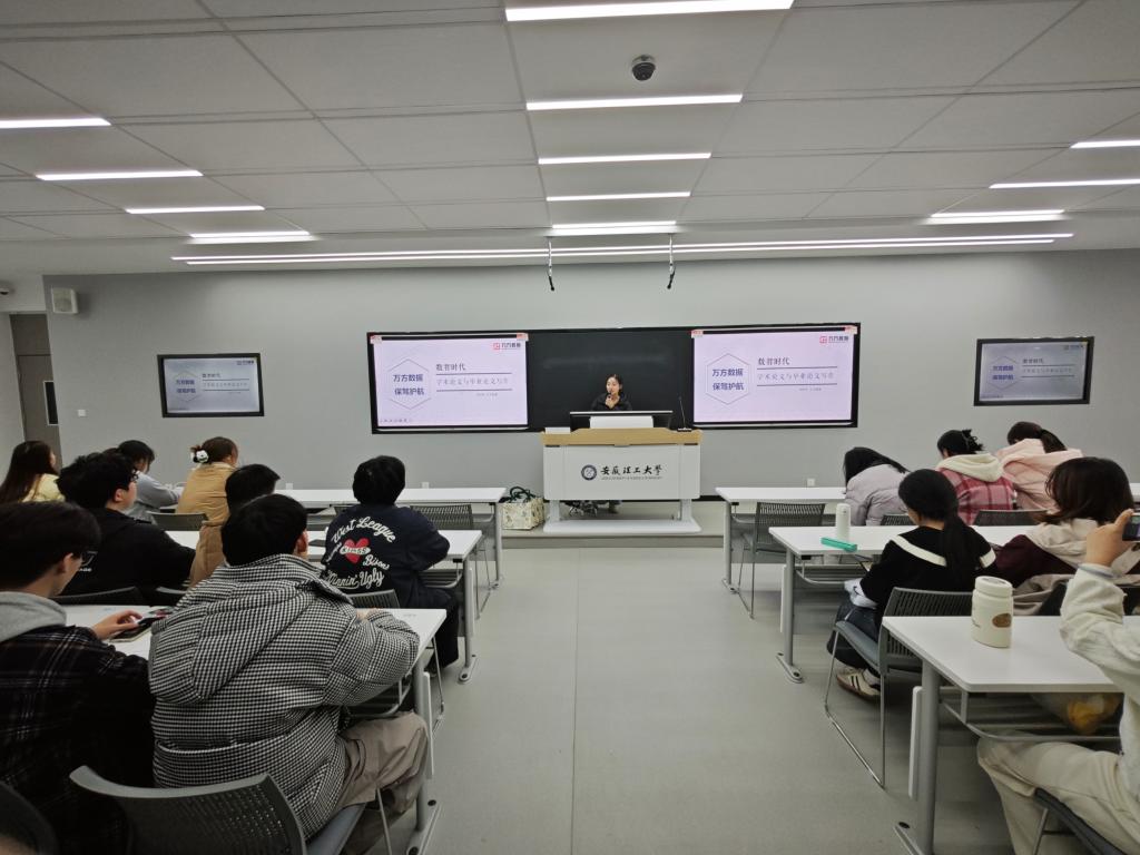 12月2日晚,图书馆特邀请万方数据库培训师,在合肥校区启智楼智慧教室举办“数智时代-学术论文与毕业论文写作”专题讲座,80余名师生参加讲座。