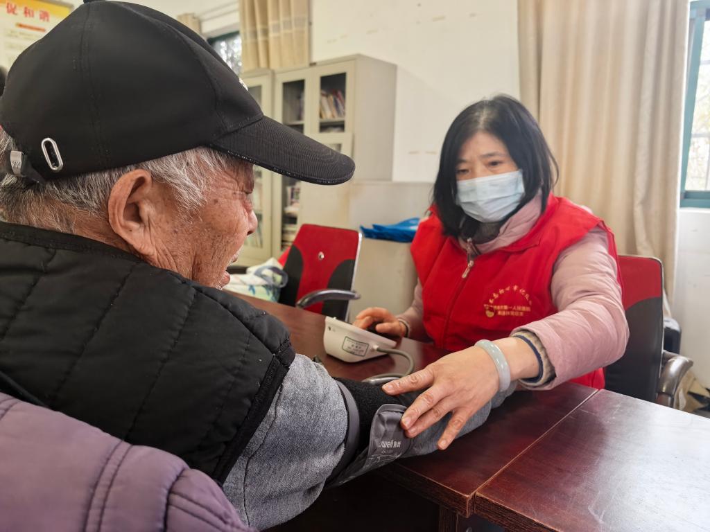 二道河村地处淮河中游,独特的地理条件让淮河在此一分为二,出村后又合二为一,地理优势十分显著。针对该村农业生产需求,服务队中的农业专家聚焦种粮大户的核心诉求,现场细致讲解农作物种植的关键技巧,逐一解答农户在日常耕作中遇到的病虫害防治、田间管理等生产难题,助力农户提升种植效率与收成。医疗服务方面,随行的20余名附属医院专家搭建起临时诊疗点,为闻讯而来的村民提供问诊咨询、基础检查等服务。专家们耐心询问村民身体状况,针对常见慢性病、老年病给出诊断建议和用药指导,切实解决了部分村民出行就医不便的问题。