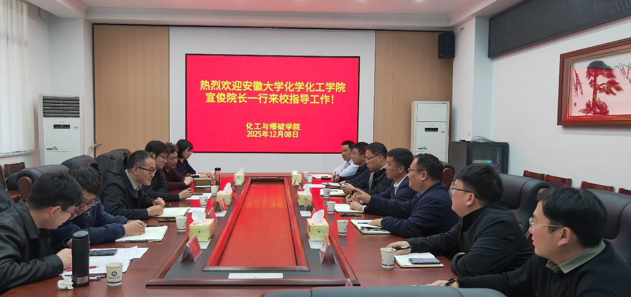 为进一步加强校际交流合作,12月8日下午,安徽大学化学化工学院院长宣俊一行6人来化工与爆破学院进行调研交流。化爆学院党委书记刘瑞,党委副书记、院长汪泉等热情接待了来宾。