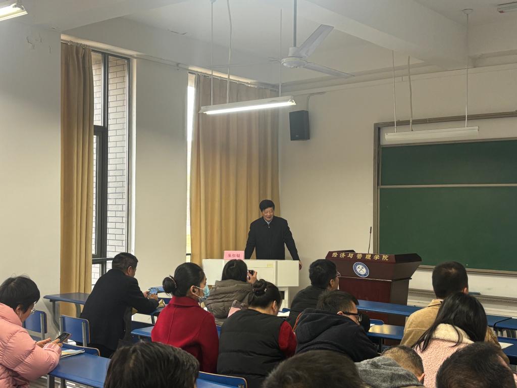 12月10日,经济与管理学院特邀大国工匠朱恒银教授,为全院教师开展《匠心铸就梦想 创新点亮人生》专题讲座。本次讲座由学院党委书记姚德利主持,全体教师参加讲座。
