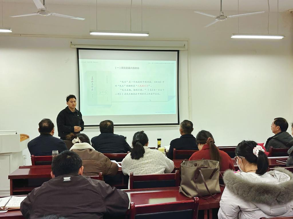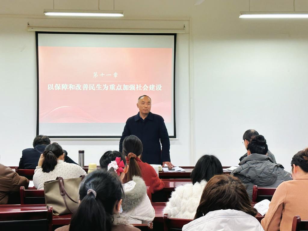 会上,郭纪青老师围绕“以保障和改善民生为重点加强社会建设”的主题进行教学展示,系统阐释了民生内涵、人民生活品质提升路径及社会治理现代化等内容。