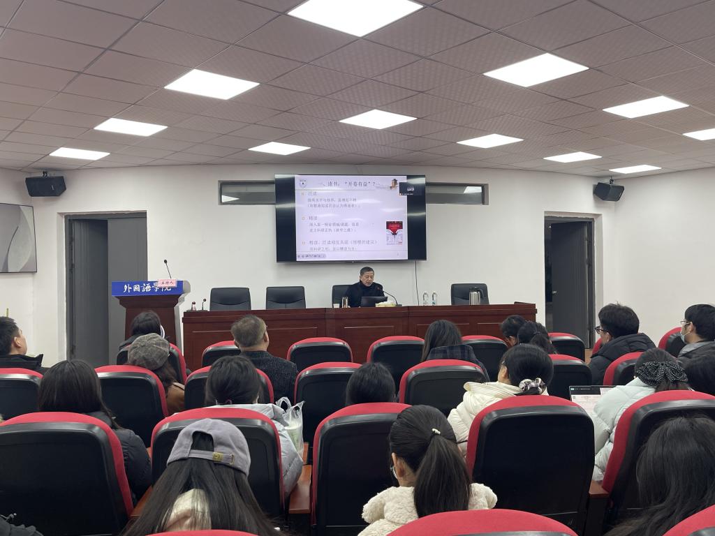 12月12日下午,应科研部和外国语学院邀请,南京大学陈兵教授在外国语学院A229学术报告厅为外国语学院师生带来“读书、问题意识与学术论文写作”的学术讲座,学院师生共计100余人参加,讲座由副院长周宁主持。