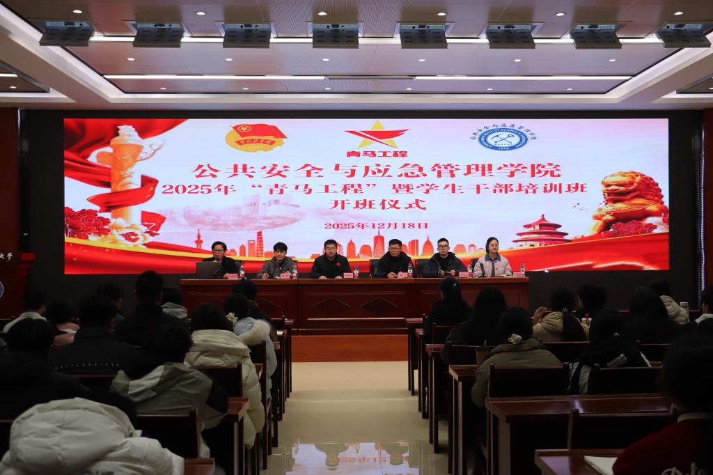 12月18日,公共安全与应急管理学院2025年“青马工程”暨学生干部培训班在念艰楼三楼会议室开班。公共安全与应急管理学院院长顾成杰,团委负责人秦飞,院团委负责人许晓鹏,辅导员代表,全体青马班学员,院第三届学生干部等百余名师生参加开班式。