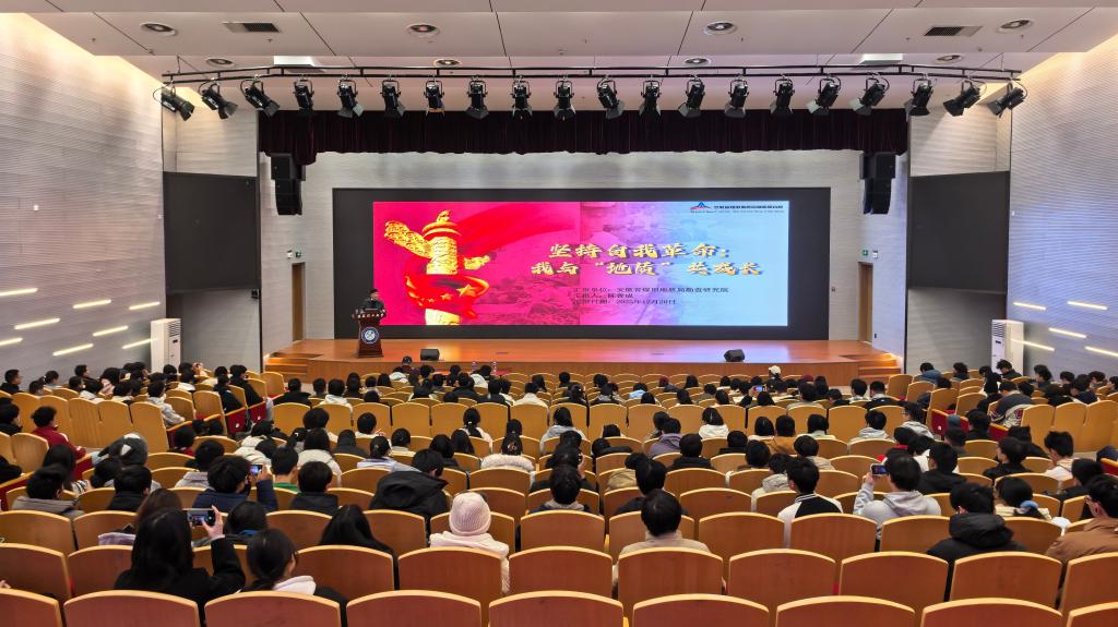 12月20日上午,由校团委主办、空间信息与测绘工程学院承办的“安理工青年讲坛”在舜耕会堂举行。安徽省煤田地质局勘查研究院副院长陈善成应邀作题为《坚持自我革命——书写绿色智能矿山建设的青春华章》的报告,300余名学生代表参加报告会。