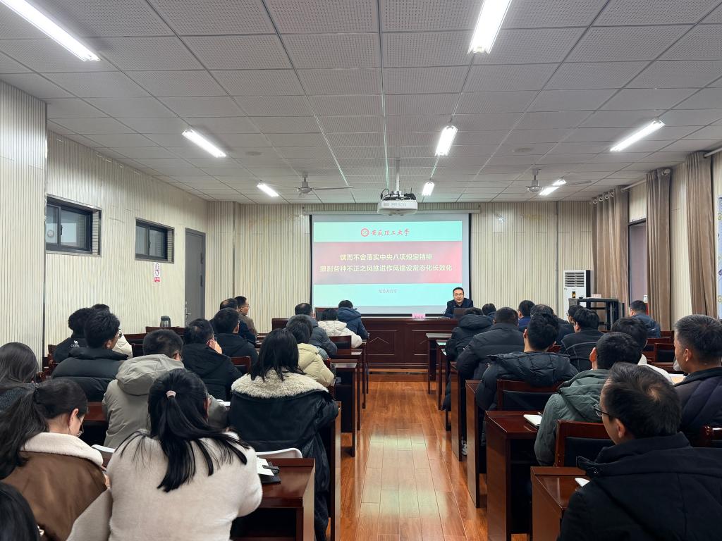 张瑞兴以“锲而不舍落实中央八项规定精神,狠刹各种不正之风,推进作风建设常态化长效化”为主题,深入剖析当前党风廉政建设新形势与新任务,系统阐述新时代高校强化作风建设、筑牢廉政防线的重大意义。他强调,中央八项规定精神是纠治“四风”、推进全面从严治党的关键抓手,必须长期坚持、久久为功。随后,张瑞兴结合高校典型违纪案例分享心得体会,并对全院教师提出三方面要求:一是保持政治清醒,坚定站稳政治立场;二是恪守师德师风,切实践行育人使命;三是涵养健康情趣,严守纪律规矩底线。