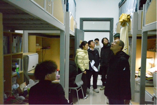 在学生宿舍,学院重点围绕消防安全展开细致排查,查看了宿舍内电器使用是否规范、电路是否存在老化破损情况,仔细排查了违规使用大功率电器、私拉乱接电线等安全隐患。针对检查中发现的插线板使用不规范等问题,领导们现场提出整改要求,叮嘱同学们要增强安全防范意识,养成良好的住宿习惯,共同维护安全、合规的住宿消防环境。
