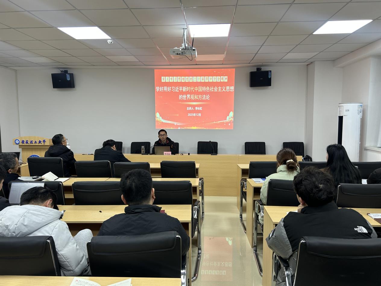 12月23日上午,公共安全与应急管理学院特邀校党委宣传部副部长李长虹作《深入贯彻党的二十届四中全会精神 学好用好习近平新时代中国特色社会主义思想的世界观和方法论》专题党课。学院党委副书记翟富林主持,全体党员及入党积极分子代表参会学习。