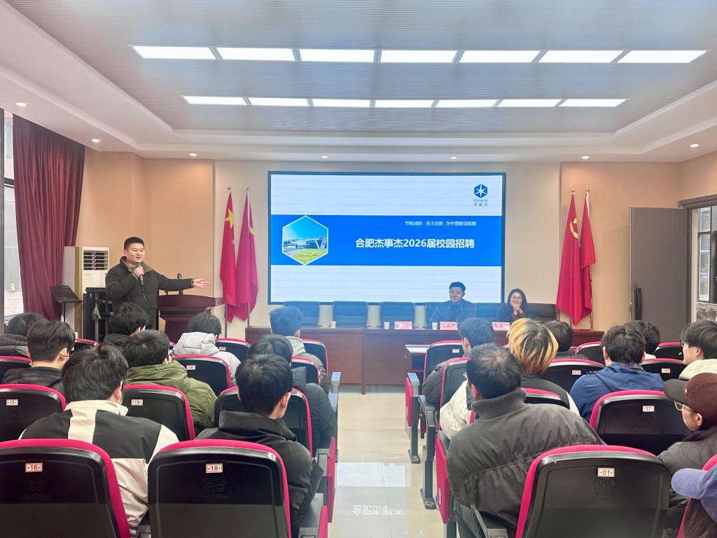 为把握“研后”就业关键阶段,推动2026届毕业生实现更充分、更高质量就业,12月24日,材料科学与工程学院在崇义楼B118举办合肥杰事杰新材料股份有限公司专场招聘会。企业制造总监、高分子材料专业校友刘义军,制造经理、校友张扬及公司招聘负责人到场宣讲,吸引了50余名应届毕业生参与。