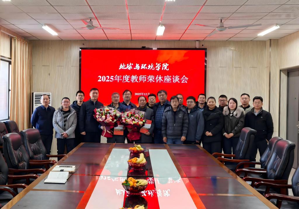 12月25日上午,地球与环境学院举行荣休仪式,为深耕教坛四十载的胡友彪教授、刘文中教授送上诚挚祝福。地球与环境学院领导班子及教师代表共同见证了这一温馨时刻。