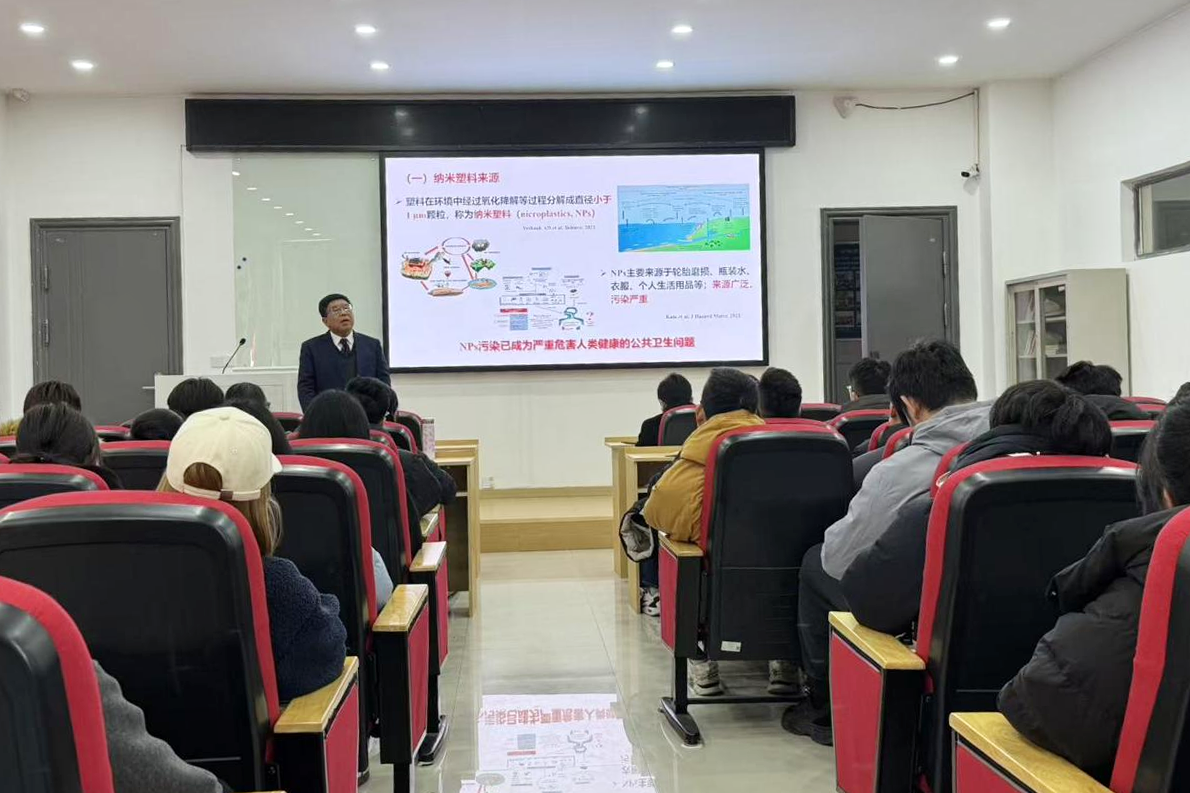 刘起展以《巨噬细胞铜死亡在微塑料所致肺气肿中作用新机制及干预研究》为题。来源广泛和污染严重的新型污染物纳米塑料(NPs)暴露可导致机体多系统损害,其中肺是其主要靶器官,但其损害机制尚不清楚,报告首次研究并揭示了SLC31A1棕榈酰化调控肺巨噬细胞铜死亡、继而介导肺泡上皮细胞焦亡参与PS-NPs所致肺气肿新机制及干预新策略,研究结果对NPs等纳米颗粒引起的呼吸系统损伤的预防及治疗具有重要科学意义和潜在的应用价值。