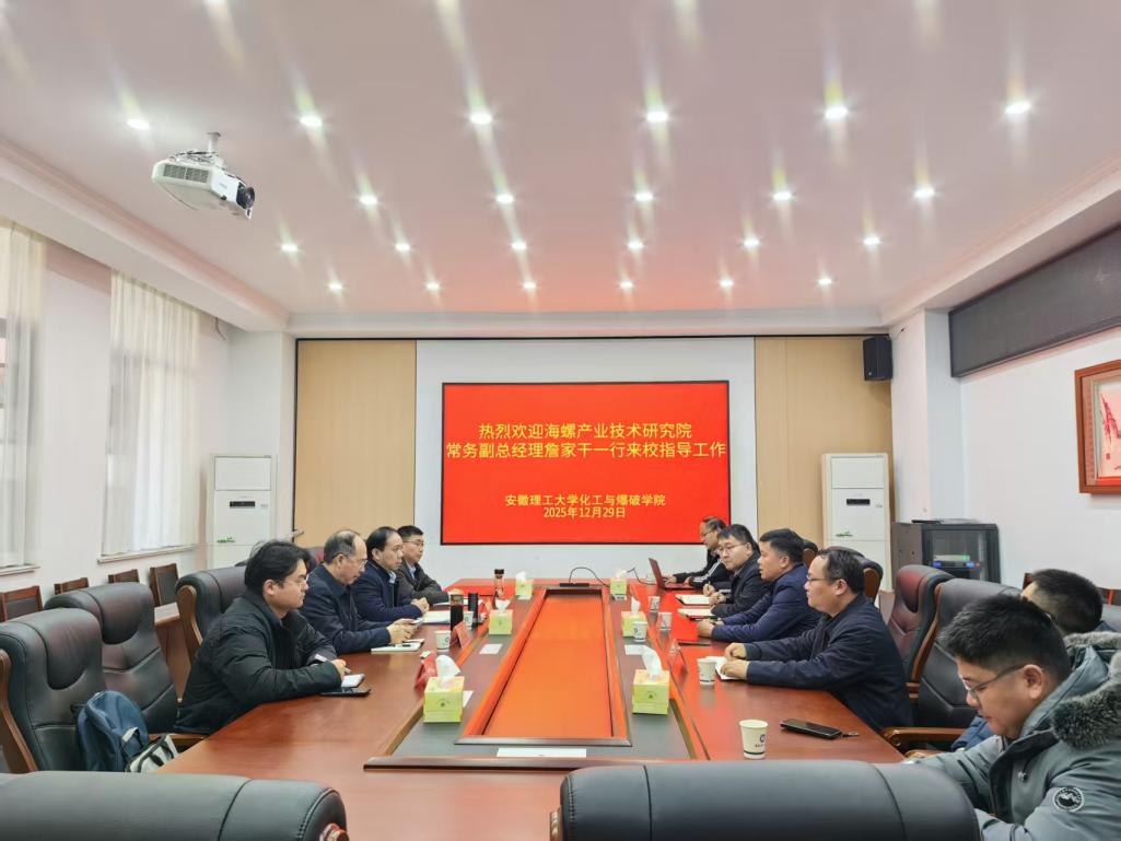12月29日,海螺产业技术研究院常务副总经理詹家干一行到访化工与爆破学院,双方在崇礼楼103会议室举行产学研合作交流会。科研部副部长张向阳,学院党委书记刘瑞、院长汪泉等参加交流。