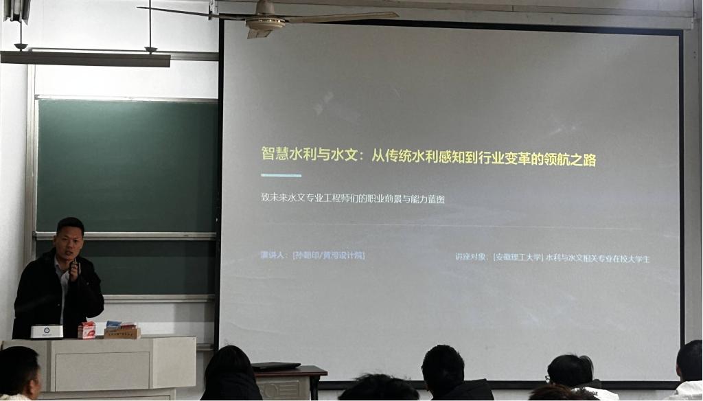 1月8日上午,黄河勘测规划设计研究院孙朝印高级工程师应邀来地球与环境学院作了题为“智慧水利与水文:从传统水利感知到行业变革的领航之路”的专业领航教育讲座,来自学院水文与水资源工程专业25级新生及青年教师共计80余人参加了本次活动。