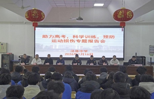 为助力高中体育生科学冲刺高考,破解训练中的损伤困扰,充分发挥运动康复在体质提升、损伤防护、成绩突破中的重要作用,1月16日,泾县医院特邀体育部杜鸿老师作为运动损伤康复专家走进泾县中学,为该校体育生带来一场专题报告,用专业力量为体育生的高考之路保驾护航。