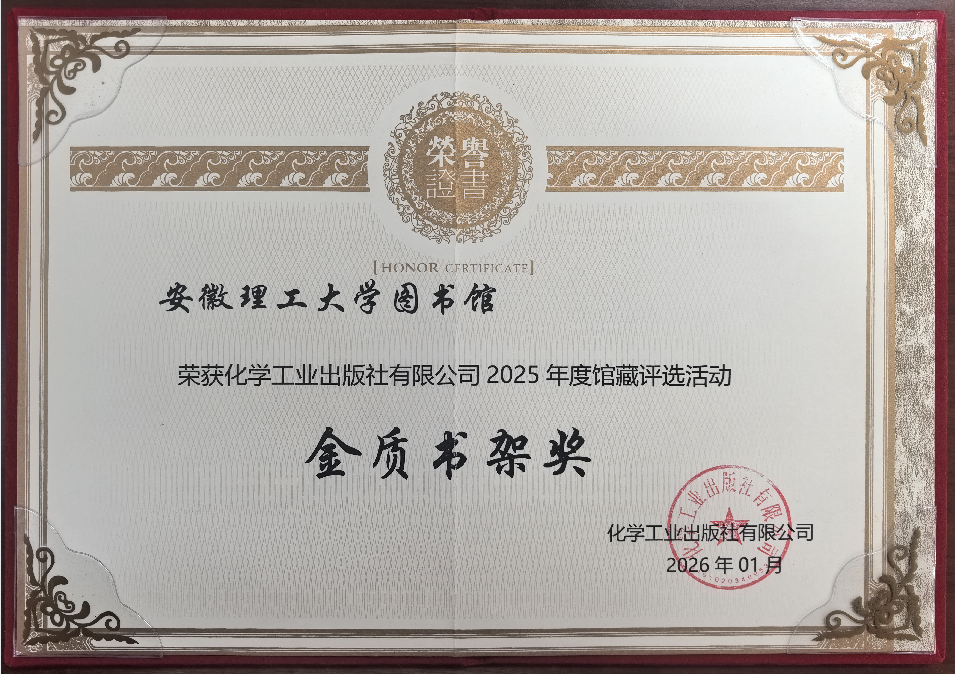 近日,安徽理工大学图书馆在化学工业出版社年度评选中脱颖而出,荣膺“金质书架奖”。该奖项聚焦馆藏质量与学科支撑能力,此次获奖标志着图书馆资源建设再上新台阶。