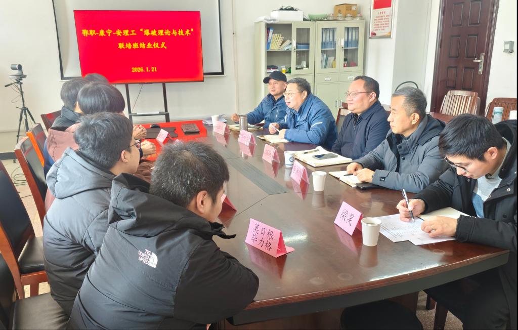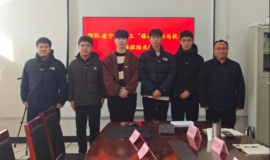 本期培训班学员周千杨、刘硕宇、莫日根毕力格、黄钰清、陈宇飞共5人,均为内蒙古康宁爆破有限公司委托培养的鄂尔多斯职业学院定向就业生。自2025年3月起,他们在安徽理工大学接受了为期两个学期、覆盖一年的集中培训,系统学习了爆破领域核心课程,并完成课程设计与实验实践,理论及实操能力显著提升。