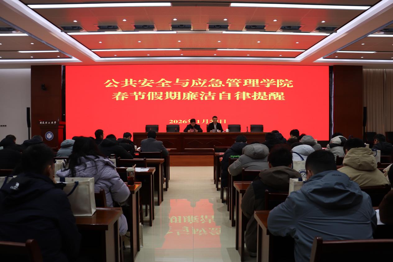 为持续巩固作风建设成果,确保2026年春节期间风清气正,1月22日,公共安全与应急管理学院在念艰楼三楼会议室召开全体教职工大会,大会由学院党委书记聂士斌主持,学院党委副书记翟富林就营造风清气正节日氛围进行了廉洁自律提醒讲话,全体教职工参加会议。