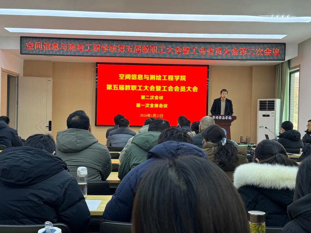 1月23日,空间信息与测绘工程学院第五届教职工大会暨工会会员大会第二次会议在求本楼204报告厅举行,学院全体教职工参加了会议。会议由学院党委书记范洪喜主持。