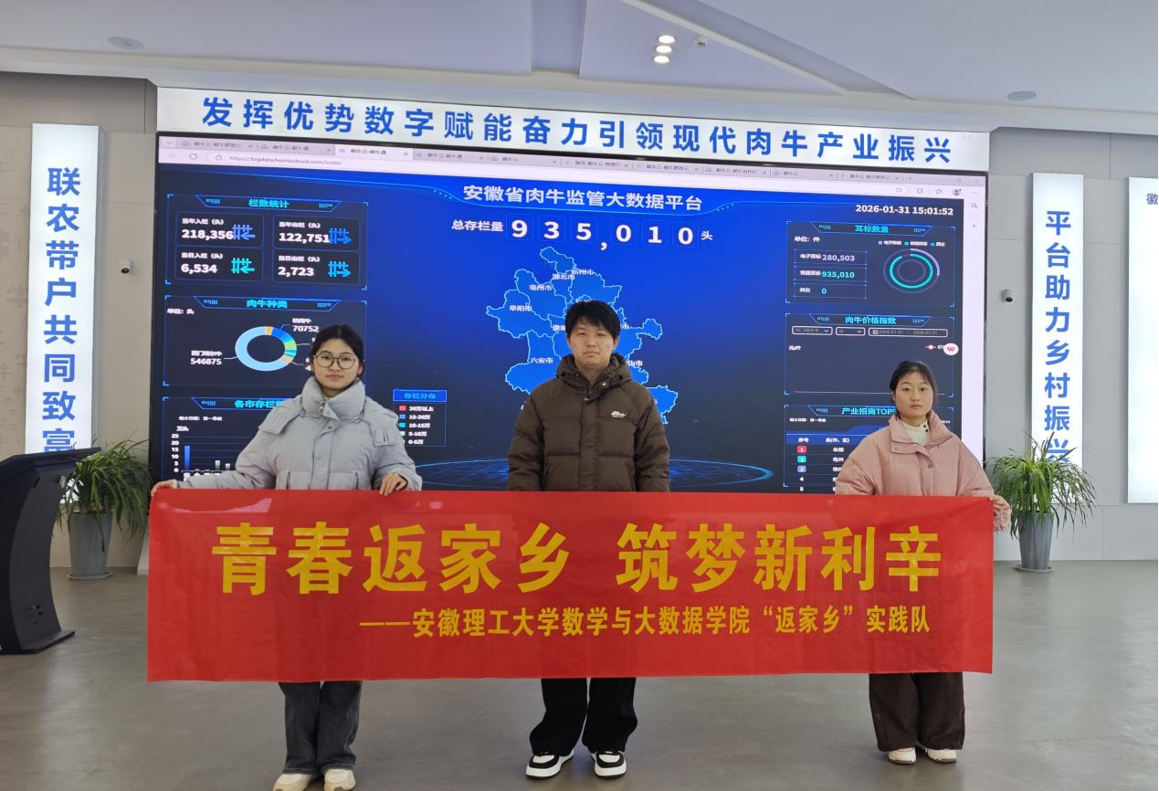 1月31日,数学与大数据学院组织利辛籍学生“返家乡”社会实践队,前往利辛县徽牛云大数据中心开展专题调研。从暑期“三下乡”的“数链兴牧”团队,到此次以“返家乡”实践者身份重访,同学们正努力从家乡产业发展的“观察者”,转变为更深层的“思考者”与“记录者”。