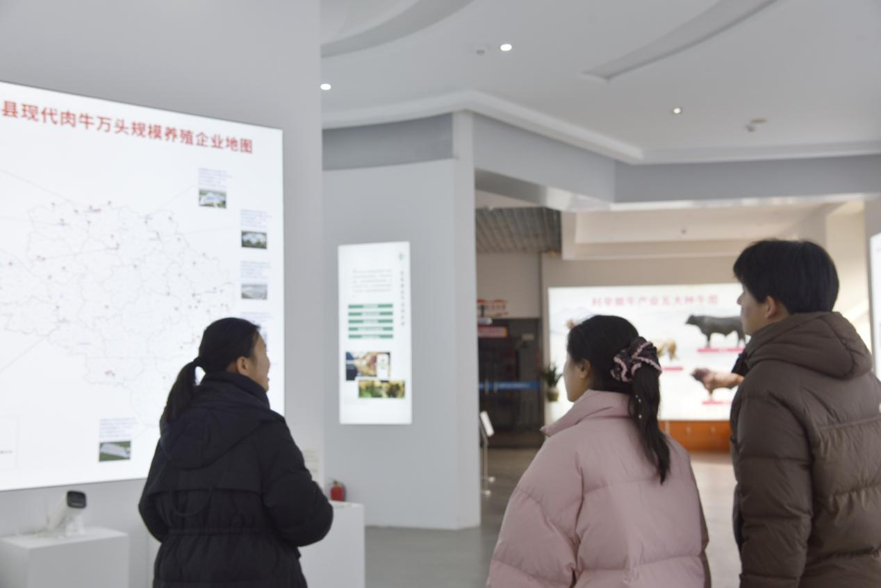 在数据中心,冯利勤经理向实践队员详细介绍了徽牛云大数据平台的最新进展。电子大屏上实时跃动的数据,清晰勾勒出全县养牛产业的动态全景——从个体牛的精准饲喂、健康监测,到全产业链的物流追踪与市场分析,平台背后运行的复杂算法与数据处理能力,令专业对口的同学们倍感亲切。队员们围绕数据采集、模型优化、技术对传统养殖模式的革新等问题,与冯经理展开深入交流。冯经理指出,产业数字化升级迫切需要既懂数据分析又了解农业实际的青年人才,期待更多学子能用专业所学赋能农业,助力乡村振兴。